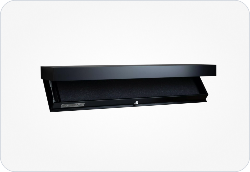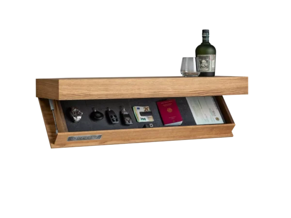 Don’t let the sleek silhouette fool you. Though compact in size, Sylent shelves are packed with powerful, thoughtfully engineered mechanisms. Hidden compartments open with smooth precision, offering secure storage without taking up floor space. It’s the ideal solution for modern homes, offices, and rentals where space is limited but smart storage is essential.